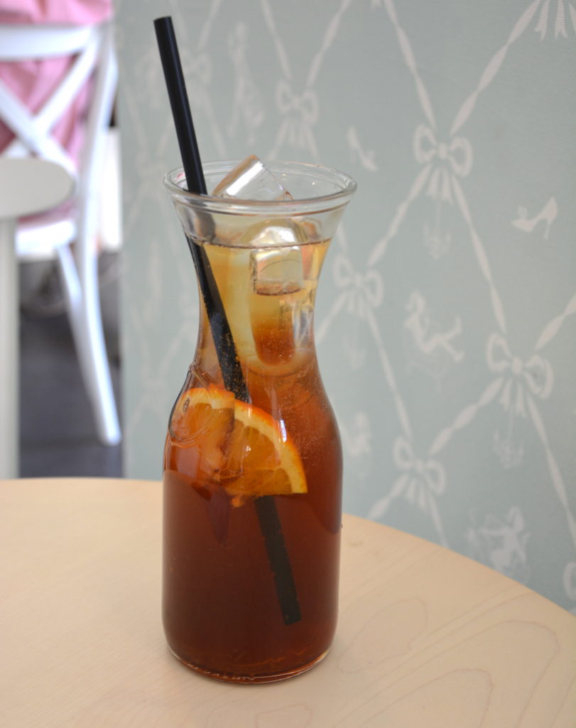 Během procházky po horkem rozpálené Bratislavě a po vystoupání do kopce k Bratislavskému hradu (byly to ty dny v létě, kdy bylo až 37 stupňů) jsem potřebovala zchladit. Ideálně ledovou kávou. Jako zázrakem se přede mnou po chvíli objevilo místo, které vypadalo, že dokáže splnit všechny mé momentální potřeby. Uvnitř mě přivítalo prostředí, které přímo vzbuzovalo chuť na něco sladkého a mě při prvním pohledu nenapadlo nic jiného, než že je to neuvěřitelně roztomilé. Pastelové barvy všude okolo a potapetované zdi se perfektně hodily k barevným makronkám ve vitrínce u baru. Na zdech jsou velké fotografie dívek s šálkem kávy v ruce a všude kolem mlsající zákazníci.