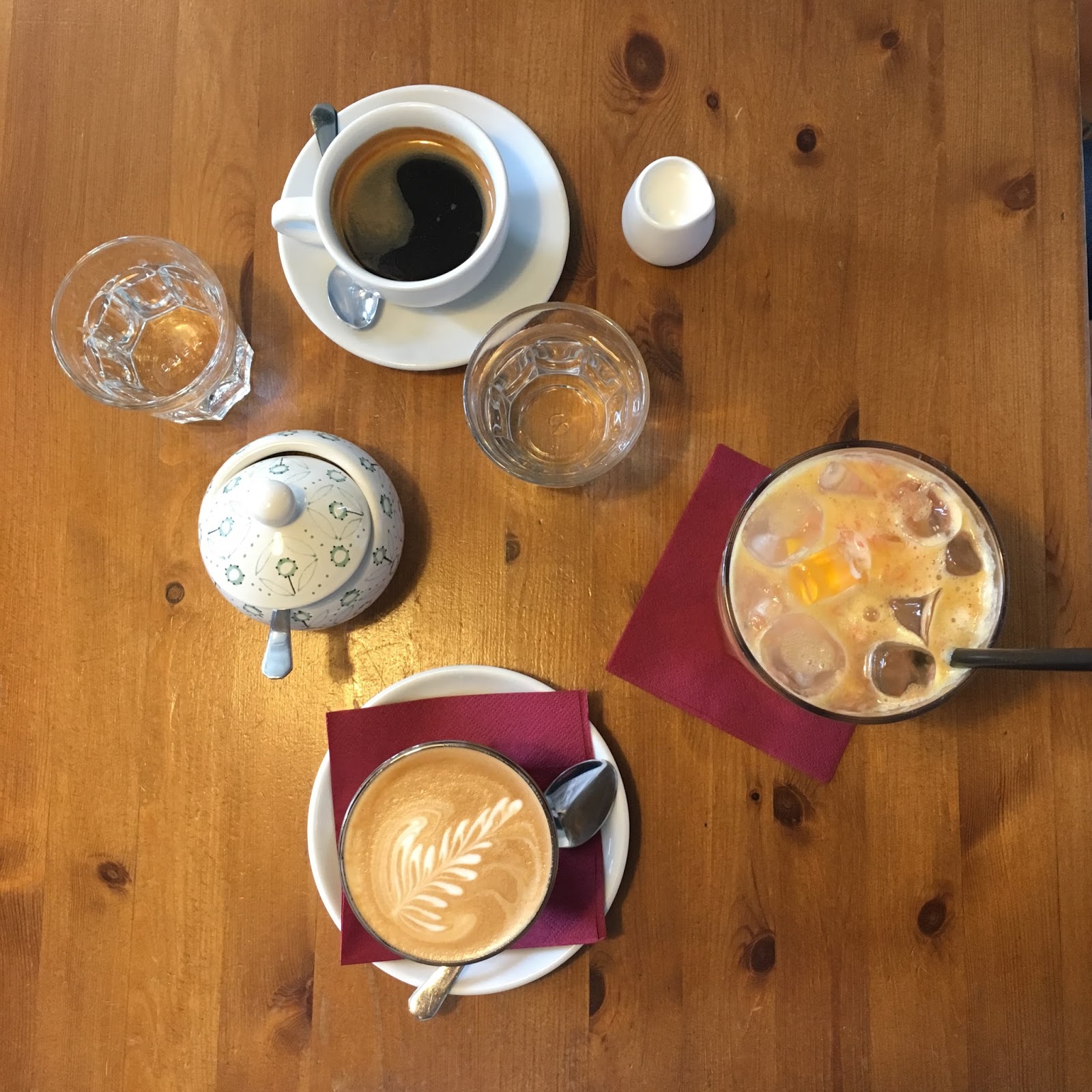 Po chvíli nám přinesli první kávy – klasický drip, flat white a americano. Nečekaně mi opět nejvíc chutnal ten drip (asi jsem poslední dobou propadla filtrované kávě). Byl jemný a lahodný, zkrátka přesně pro mě.
