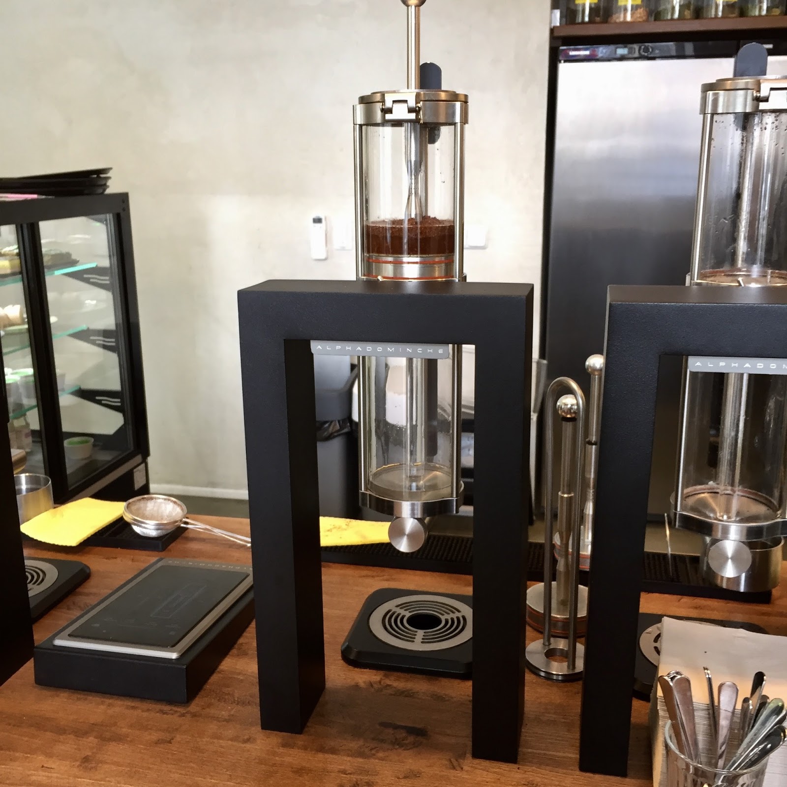 Když jsem pak čekala na svou Nikaraguu, musela jsem vstát a jít se podívat na ten fantastický – pro mě až téměř futuristický – stroj, který ji připravoval. Stála jsem a fascinovaně pozorovala, jak se proplachuje filtr, připravuje probublávající křišťálově průzračná voda, jak slečna sype do horní části válce kávu, jak se najednou v horní části spustí “deštík”, který v pravidelných intervalech stéká na rozemletou kávu, až se dole začne vytvářet ten lahodný mok. Koneckonců, pokud Vás to hodně zajímá, Momoichi má na svých facebookových stránkách video toho, jak příprava probíhá.