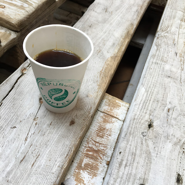 Musím zkrátka uznat, že v téhle kavárně vědí, jak na to. Zprvu jsem byla trošku zklamaná, že si nesednu uvnitř a neužiji si tu pořádnou kavárenskopovalečskou atmosféru, ale duch celého místa byl natolik silný, že i ty kelímky na kávu měly nakonec něco do sebe.